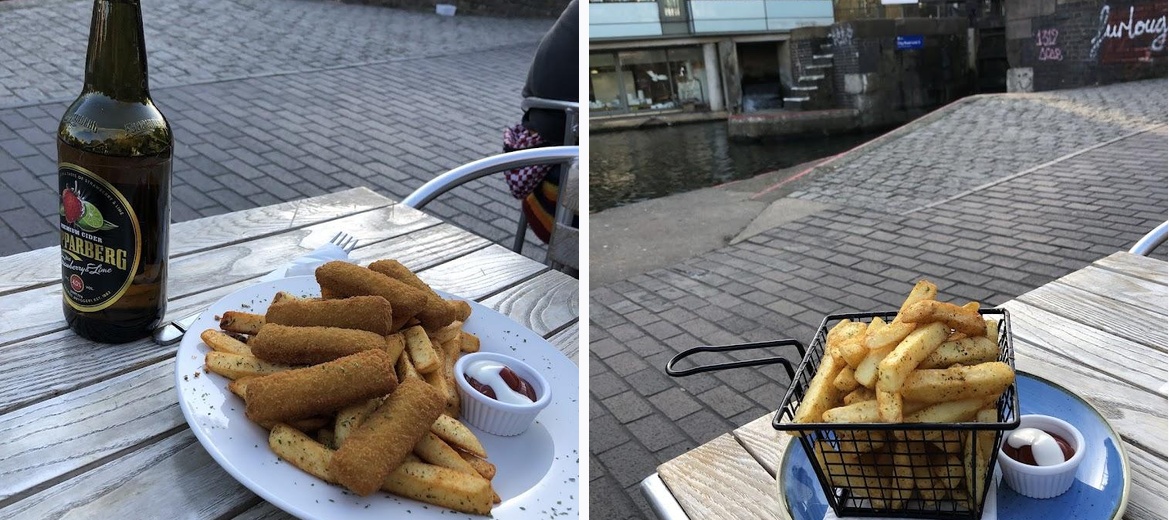 I genuinely like this place: the location, the canal, those tables outdoors and all those insolent seagulls and geese. Their chips are delicious, and it’s nice to have a bottle of cider there. Haven’t tried their Turkish meals by now (but I guess I will)
